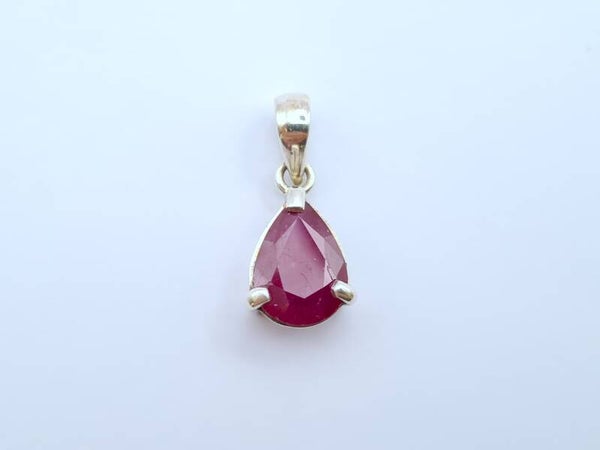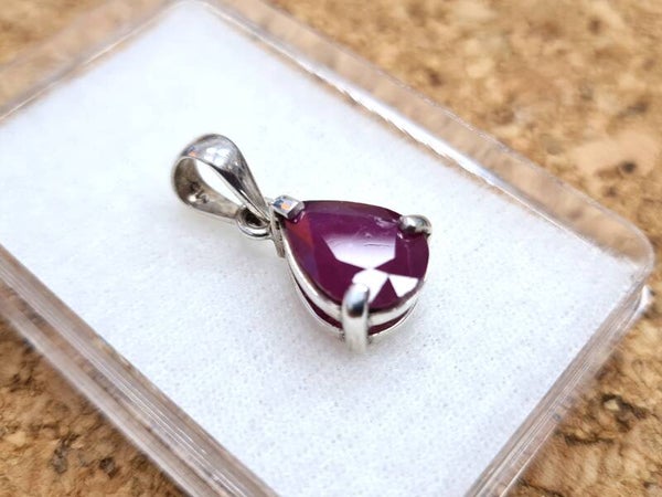 Rubin, Anhänger facettiert, Solitär, Tropfenform, in Silberfassung mit Silberöse