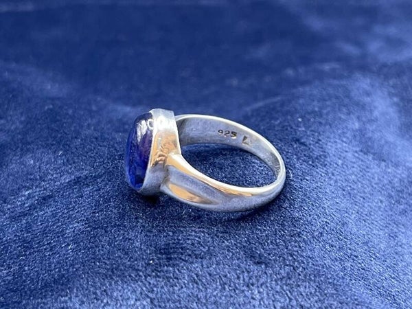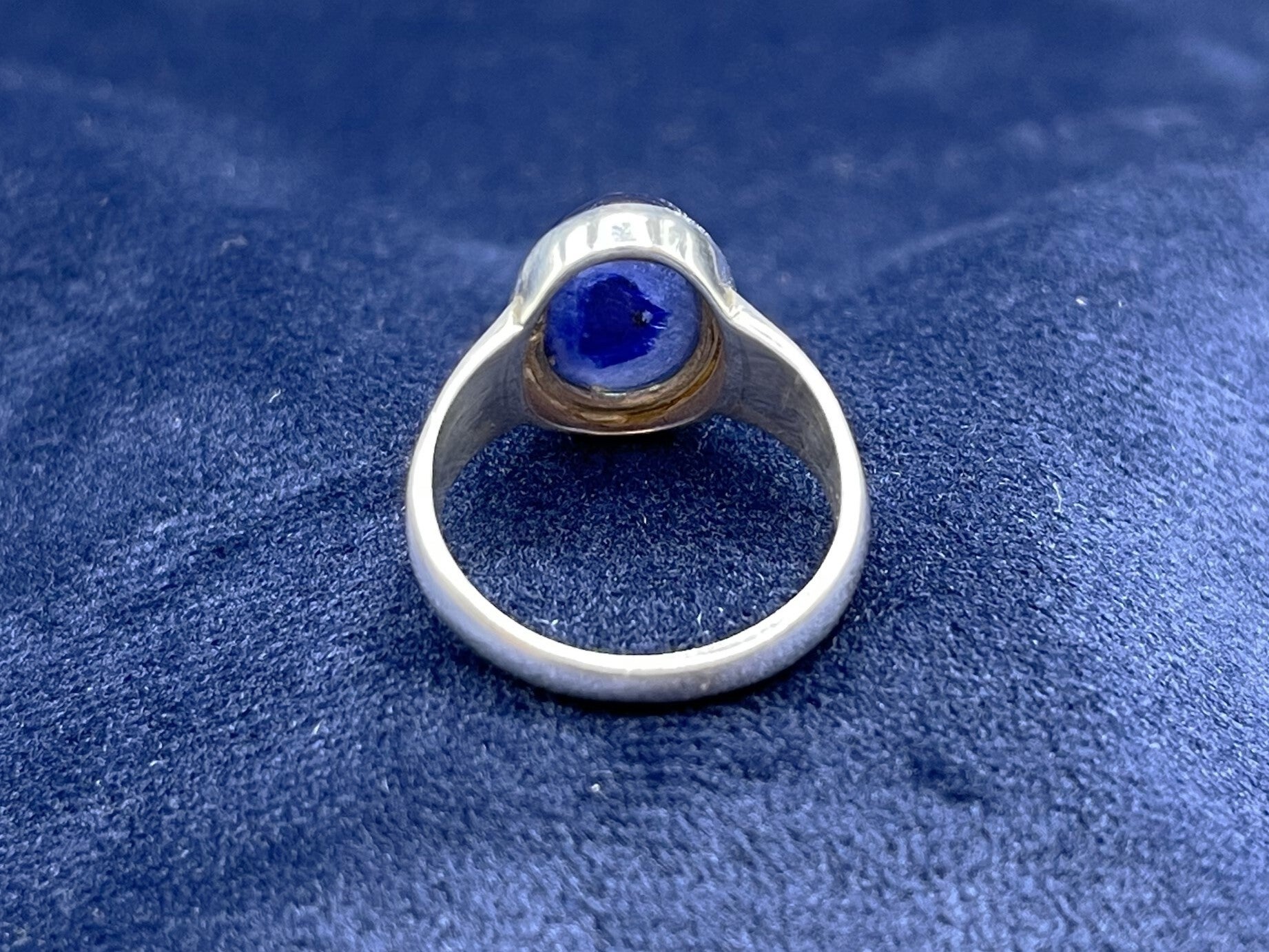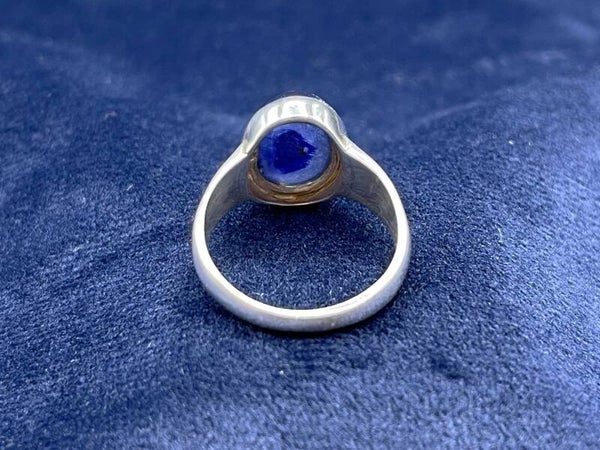Der Ring besteht aus meisterhaft gearbeitetem 925er massiven Silber. Der Saphir ist glatt poliert und glänzt. Durch seine offene Rückseite wird er von Licht durchflutet, wirkt beinahe leuchtend blau und setzt den Saphir perfekt in Szene.