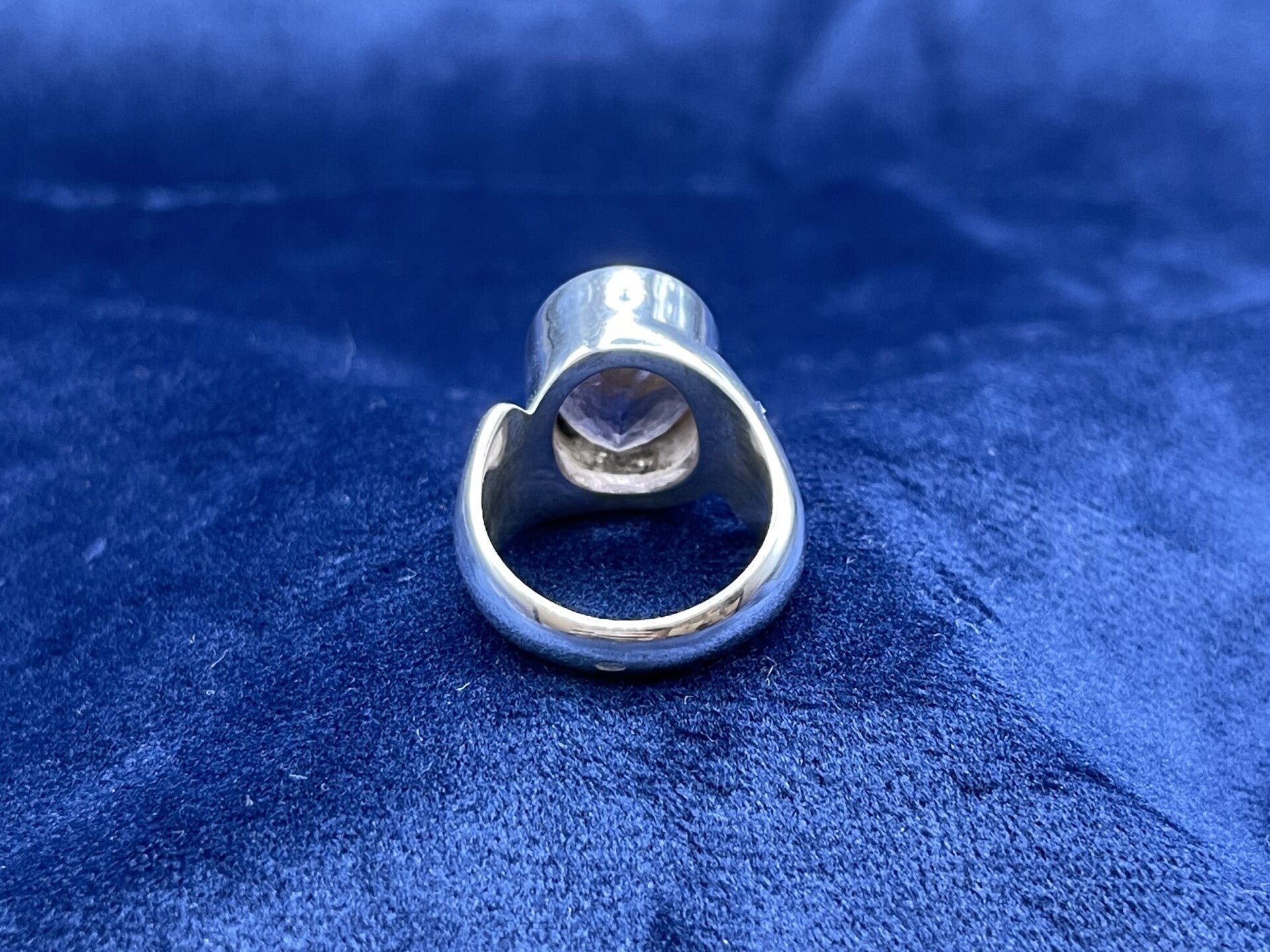 Der Ring besteht aus meisterhaft gearbeitetem 925er massiven Silber. Der funkelnde Juwel kommt durch die geschwungene, jedoch schlichte Fassung besonders gut zur Geltung und wirkt durch die offene Rückseite und das dadurch hineinfallende Licht, beinahe leuchtend. Es handelt sich um einen sehr klaren Ametrin in zartem lila.