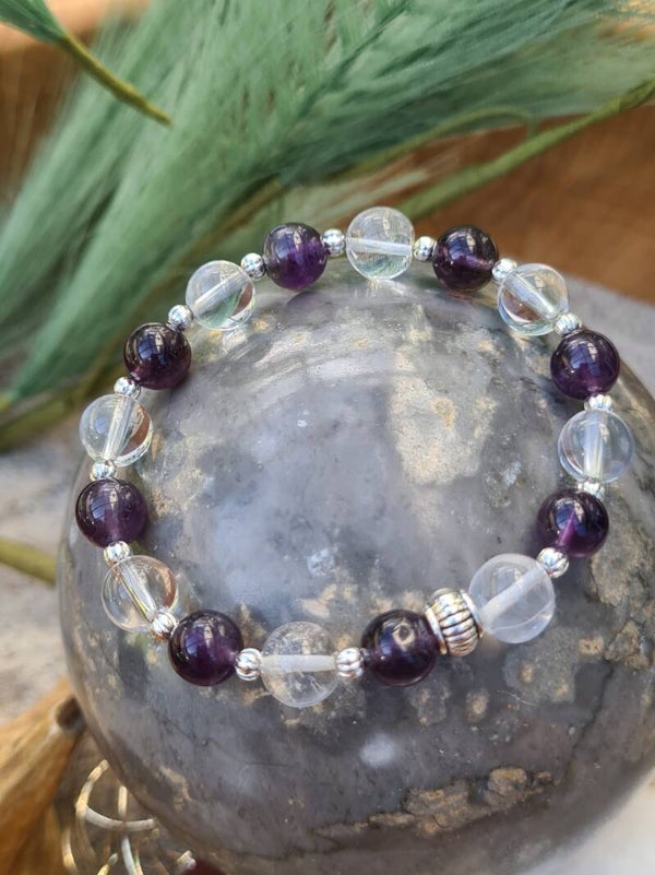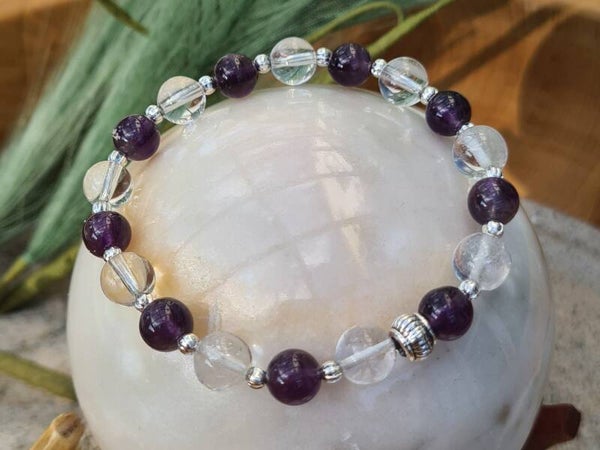 Armband "Purify" mit Amethyst- und Bergkristallperlen