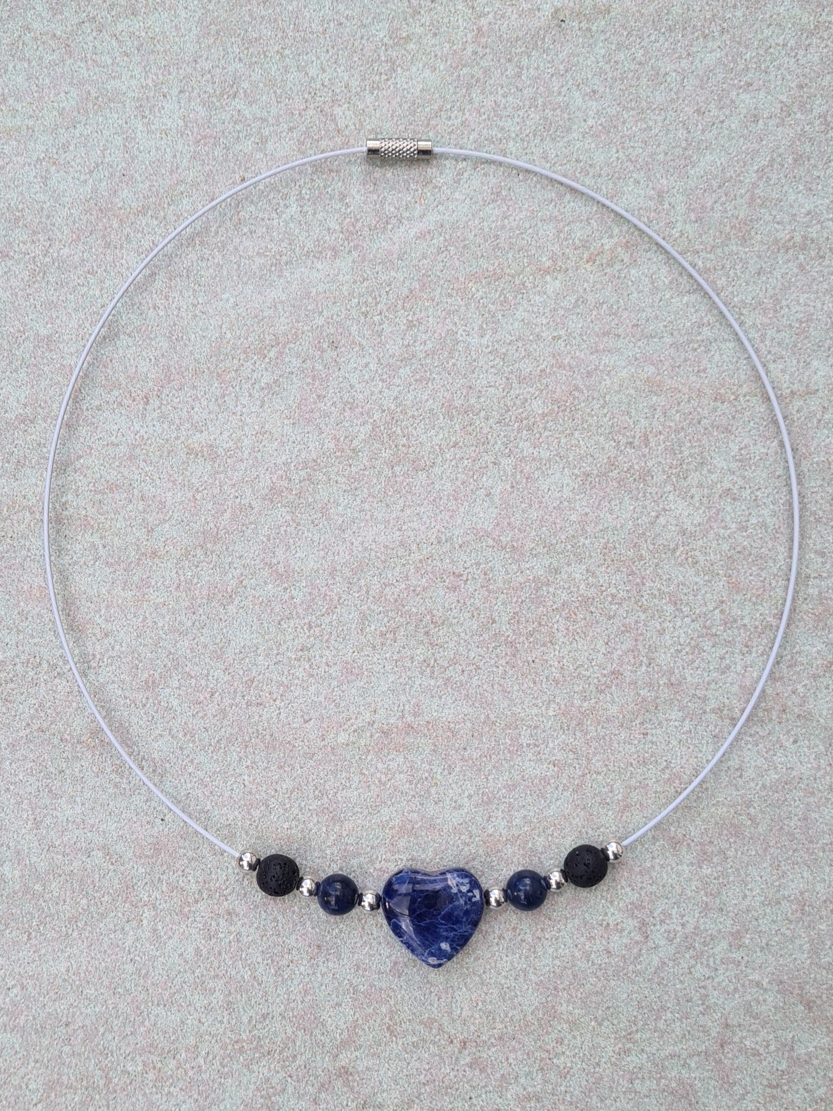 Halsreif "Sodalith" mit Herz und Perlen aus Sodalith und Lavaperlen