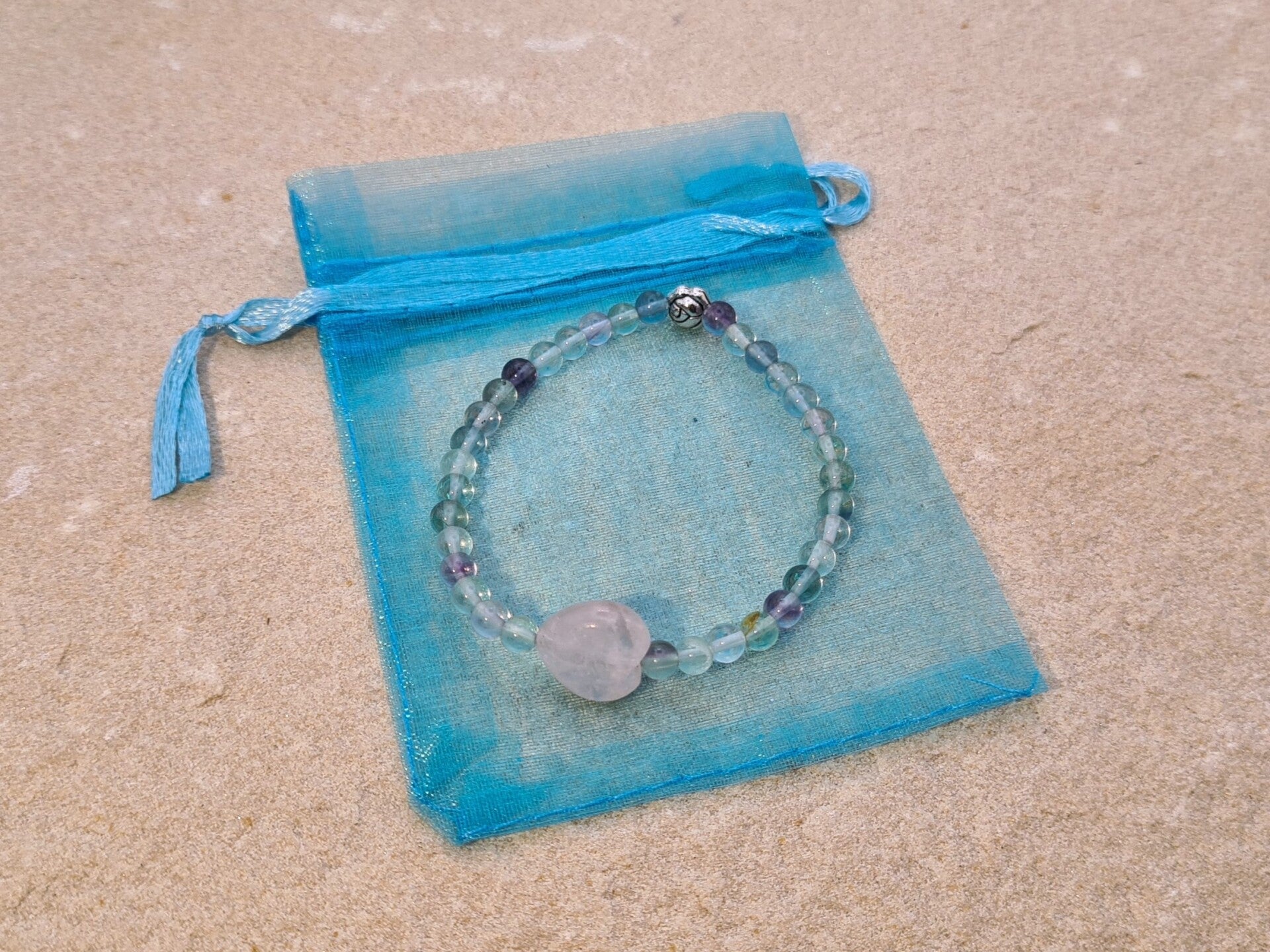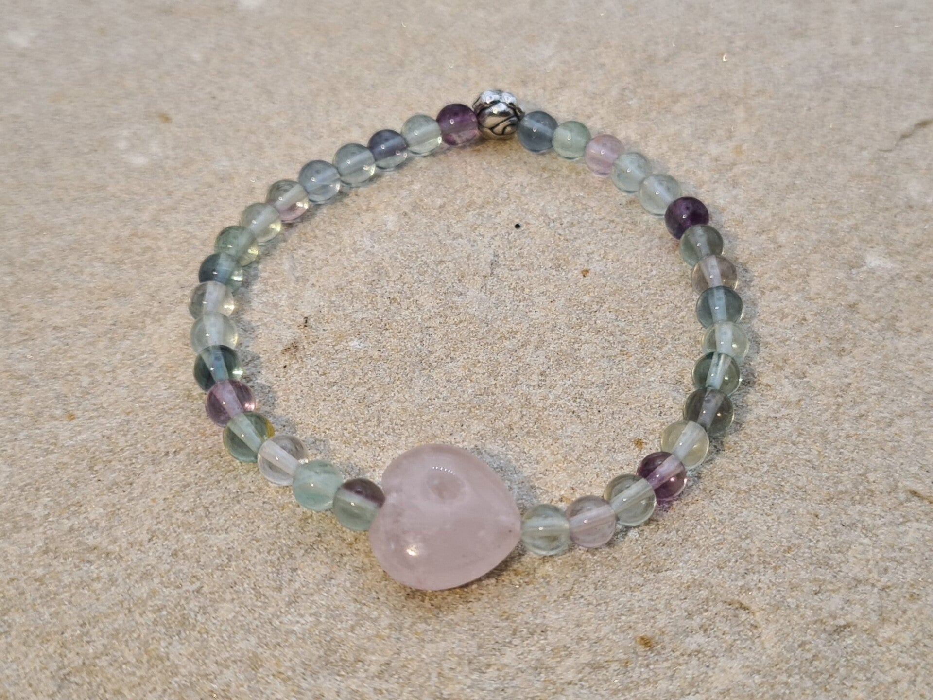 Armband Kids "Sehendes Herz", Fluorit und Rosenquarz, Kreativität, Liebe, Konzentration, Vitalität