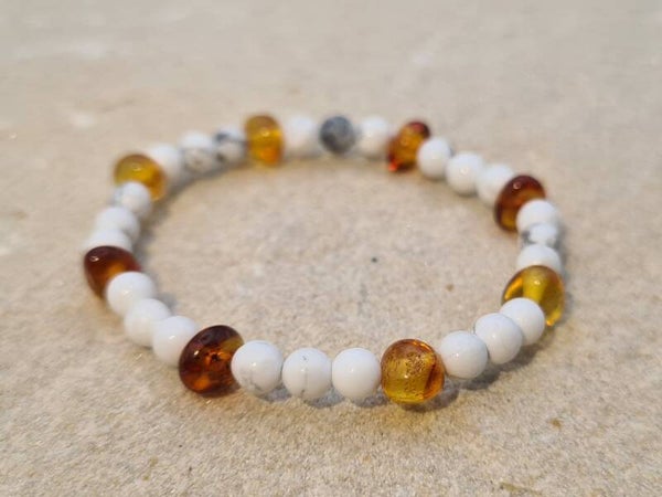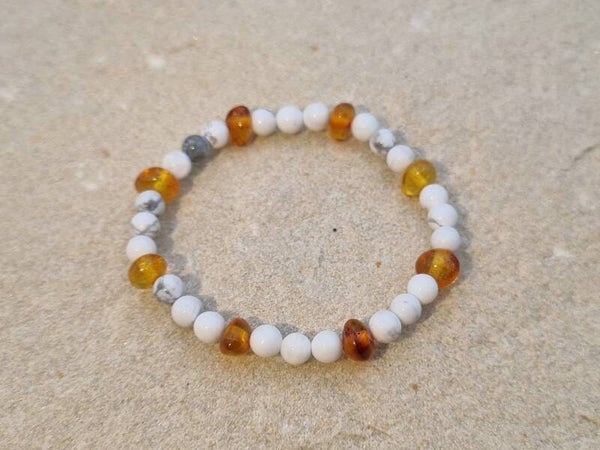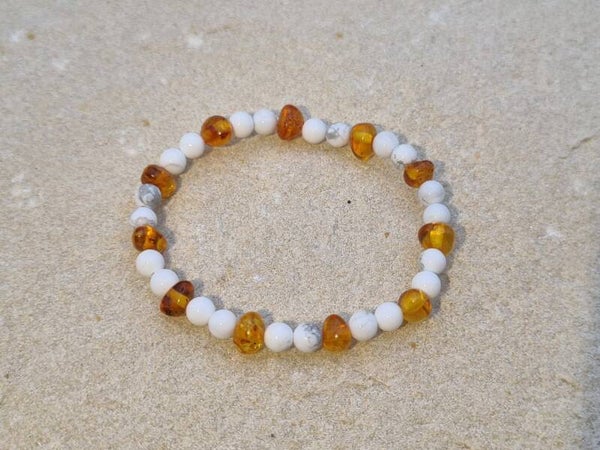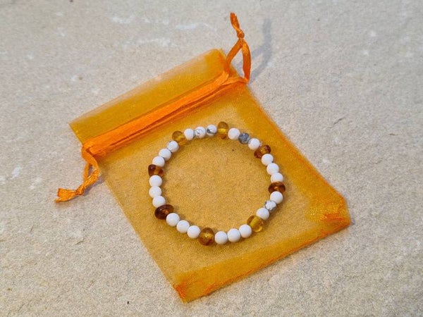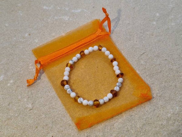 Armband Kids "Zuversicht & Entspannung", Magnesit, Bernstein; Ausgeglichenheit, Entspannung, Lebensfreude, Optimismus