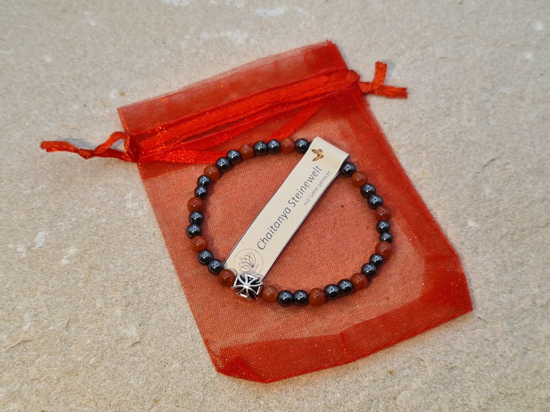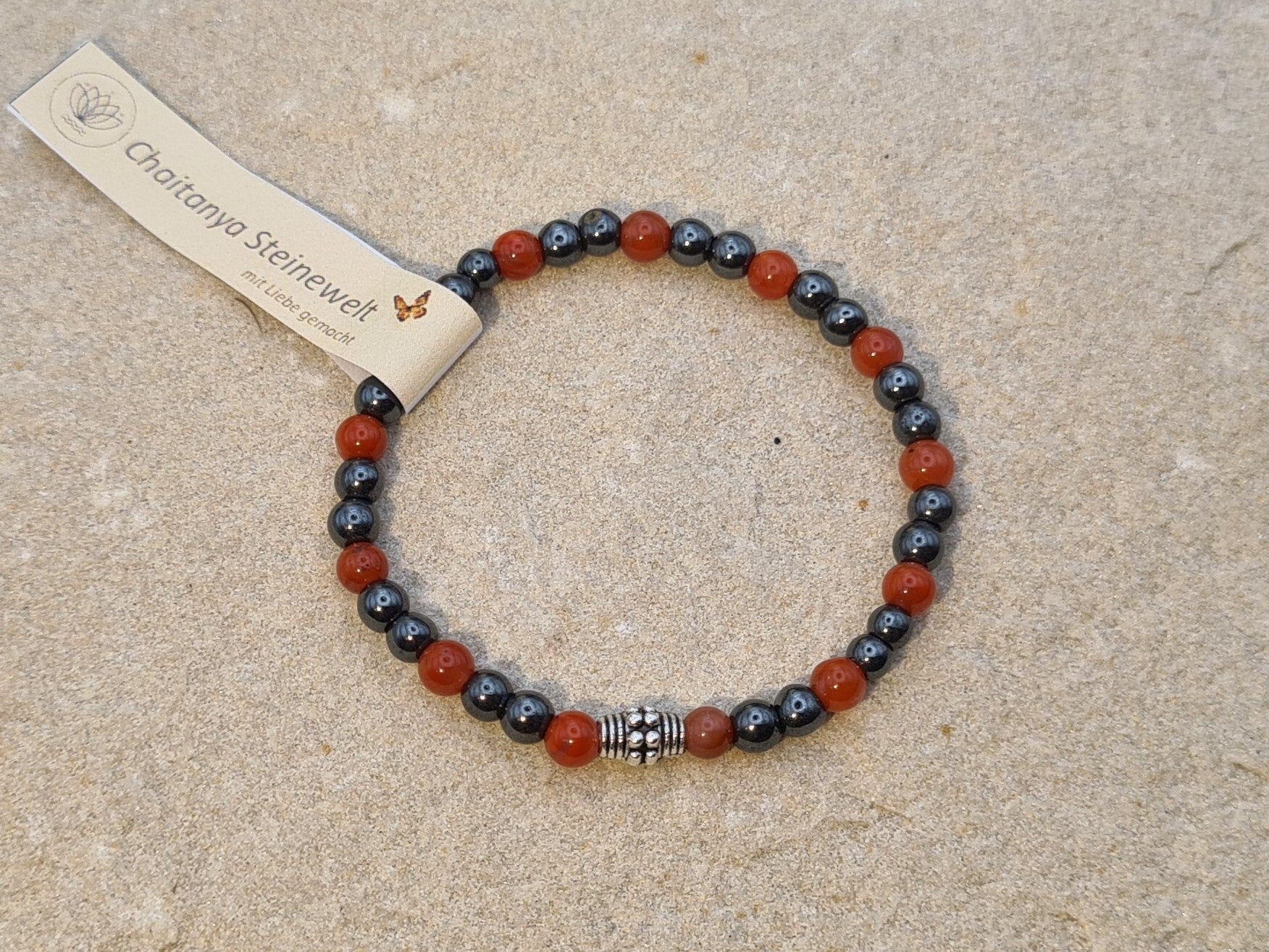 Armband Kids "Brave Heart", roter Chalcedon, Hämatit; Standfestigkeit, Mut, Kraft,