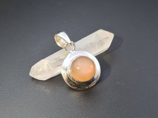 apricotfarbener Mondstein Anhänger mit Silberfassung