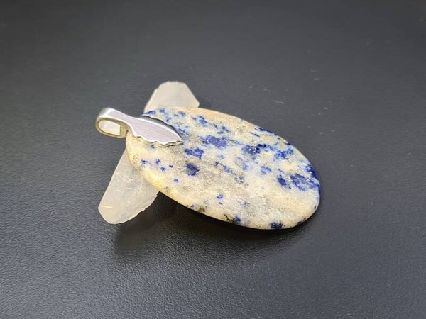Lapislazuli mit Pyrit in Feldspat, Anhänger mit silberner Öse