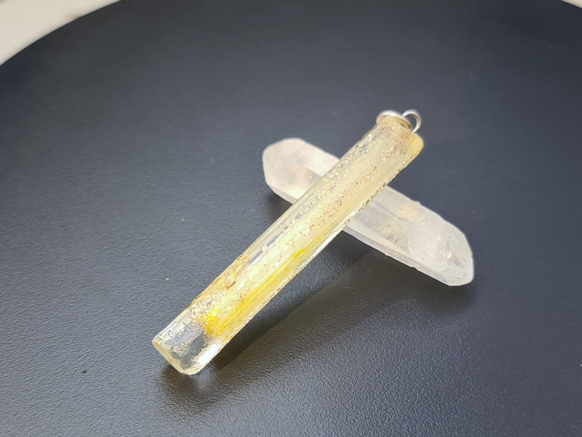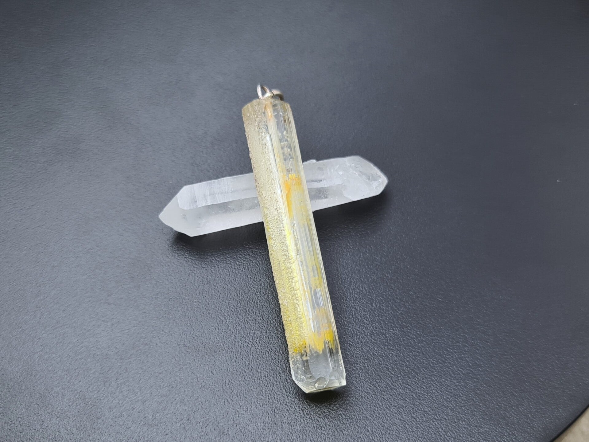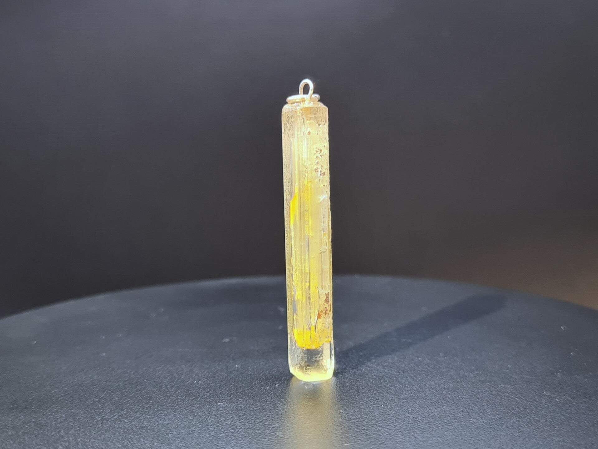 Goldberyll Naturkristall Anhänger mit Silberöse
