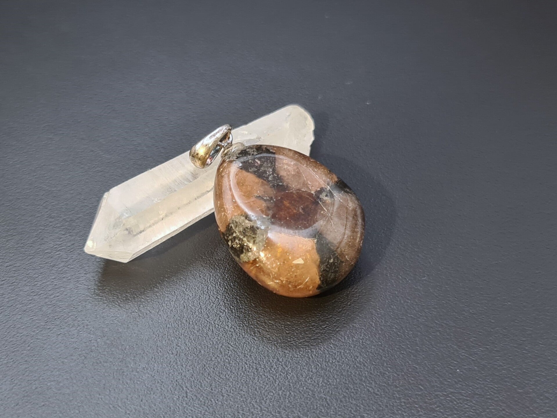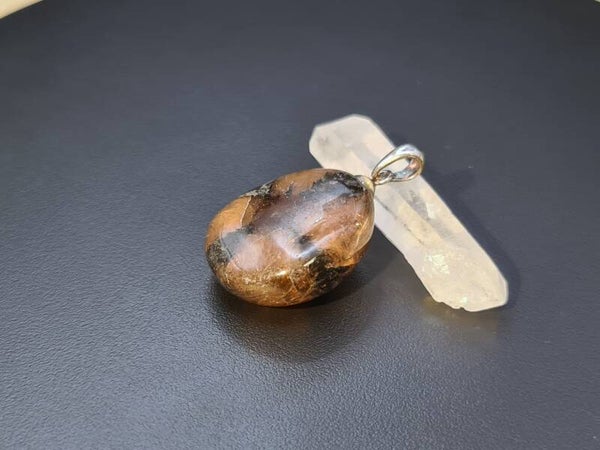 Chiastolith (Kreuzstein), Anhänger mit Öse aus 925er Silber
