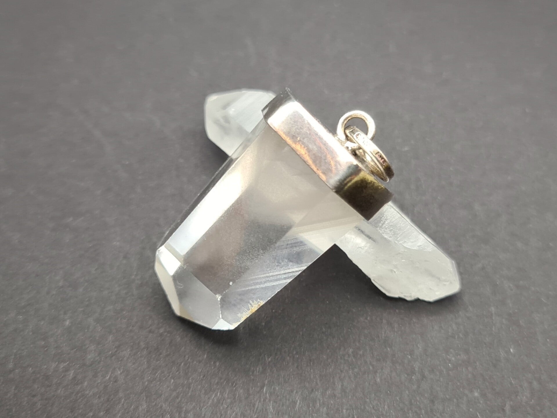 Phantomquarz Bergkristall Anhänger mit Kappe aus 925er Silber