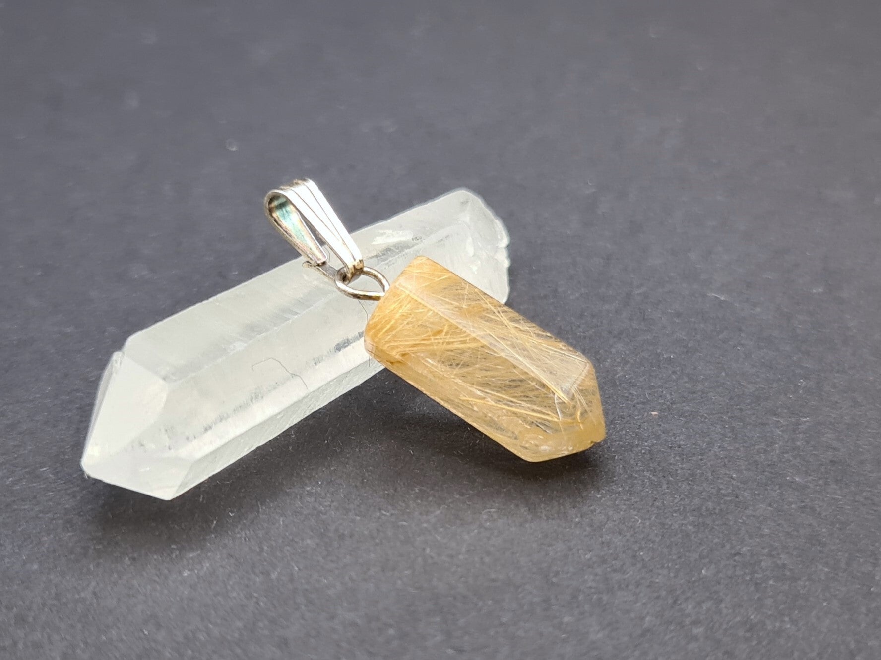 Rutilquarz Goldrutil Anhänger mit Öse aus 925er Silber