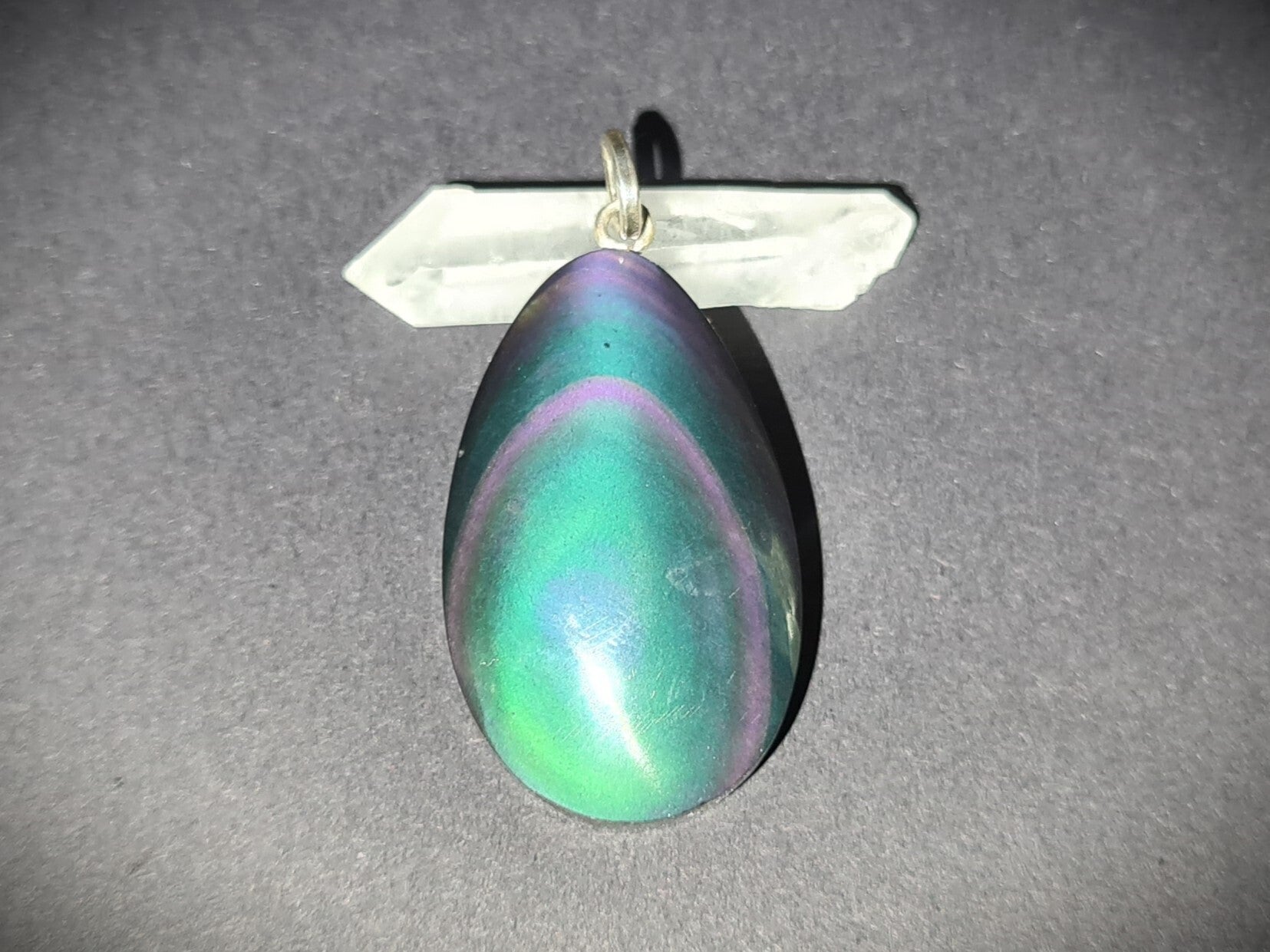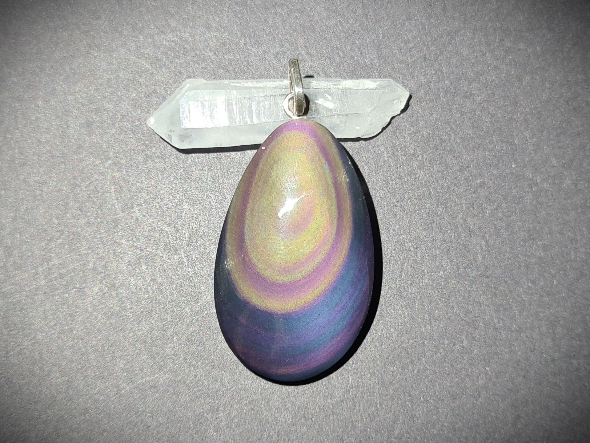 Regenbogenobsidian Anhänger mit Öse aus 925er Silber
