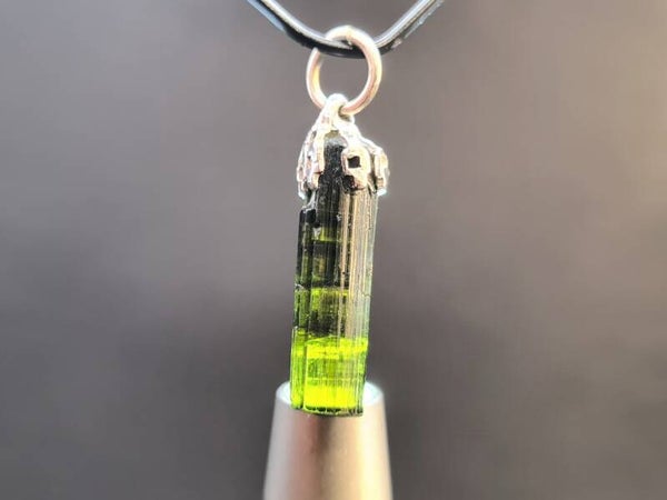 grüner Turmalin Verdelith mit Silberkappe (925er Silber)