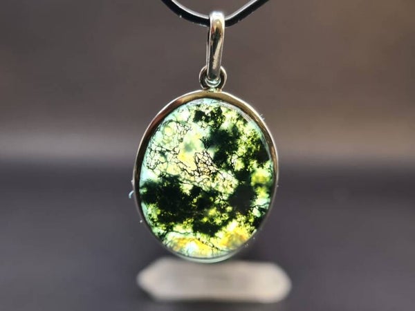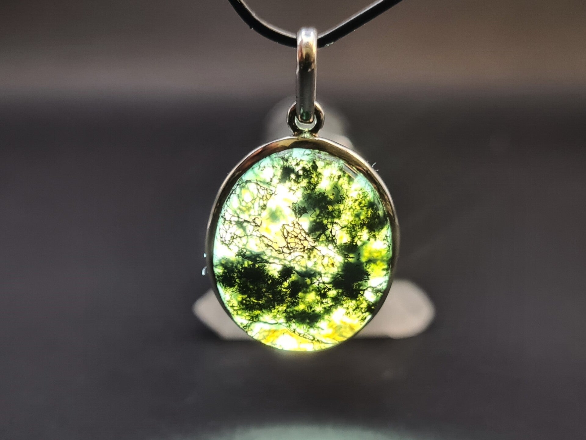 Moosachat Anhänger mit Fassung aus 925er Silber
