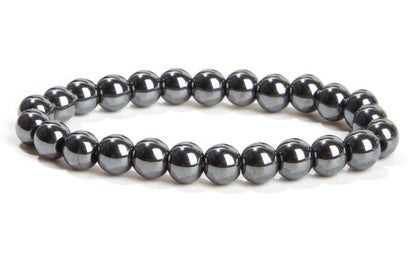 Das Hämatitarmband ist auf Gummiband gefädelt und ca. 19cm lang.