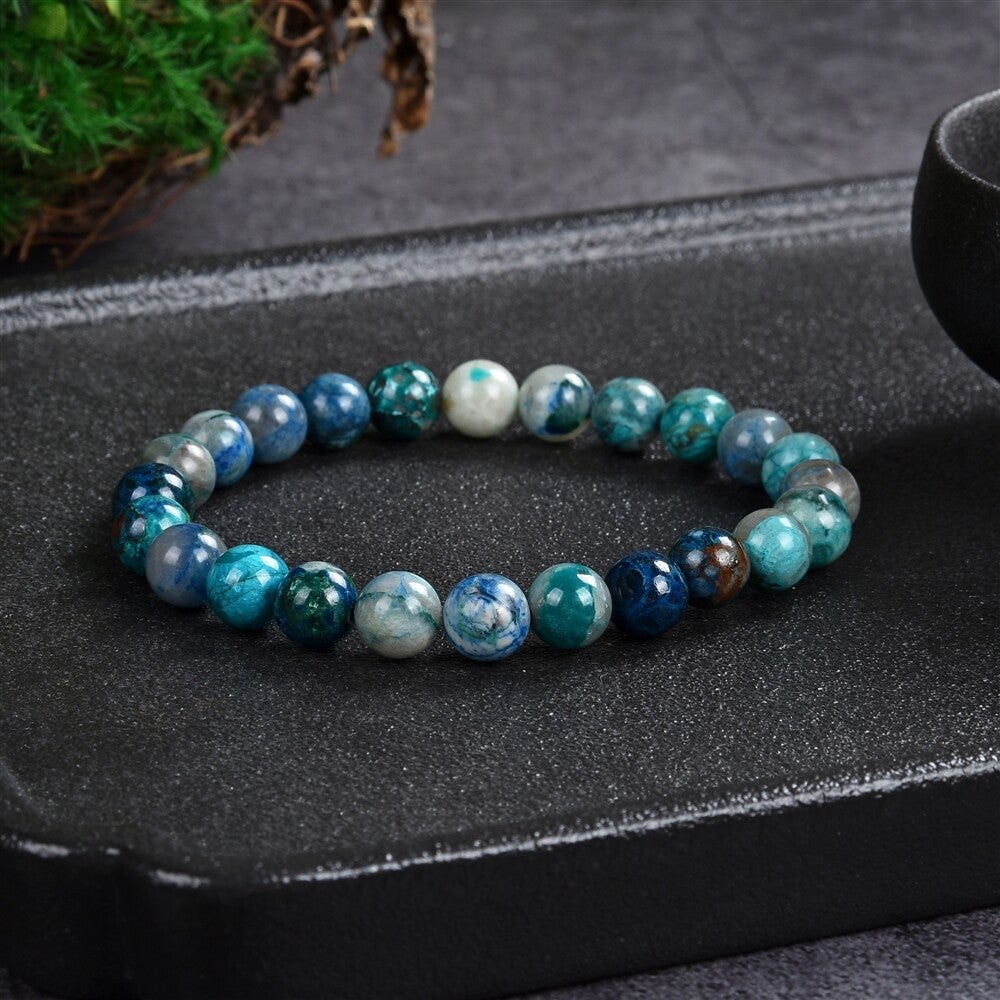Armband mit polierten 8mm-Kugeln, auf transparentes und farbloses Elastikband gefädelt, Länge nach Wunsch