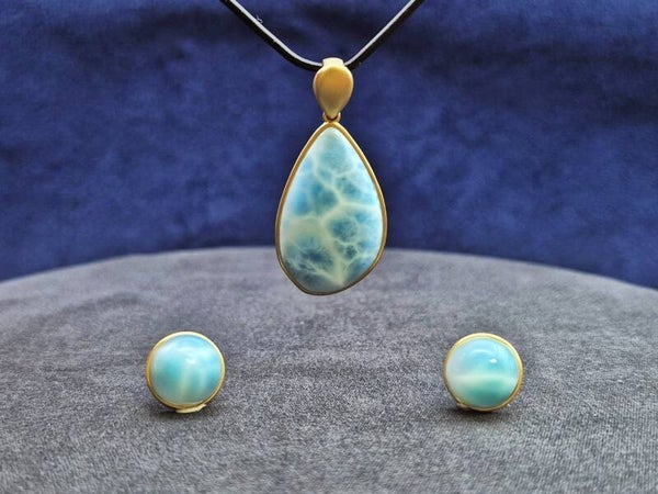 Larimar (Pektolith), Anhänger mit Ohrstecker, 750er Gold