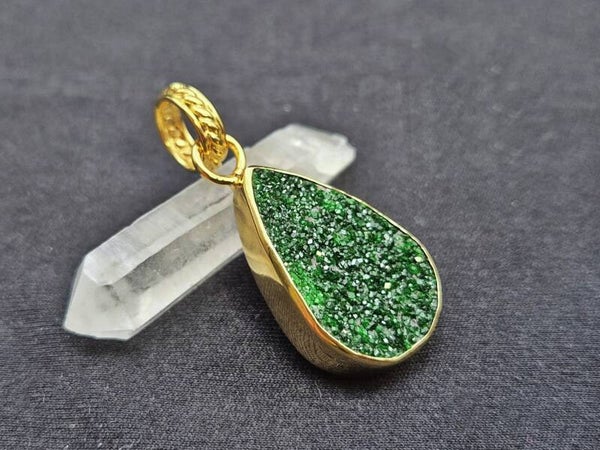 Granat Uwarowit, Anhänger, 925er Silber vergoldet