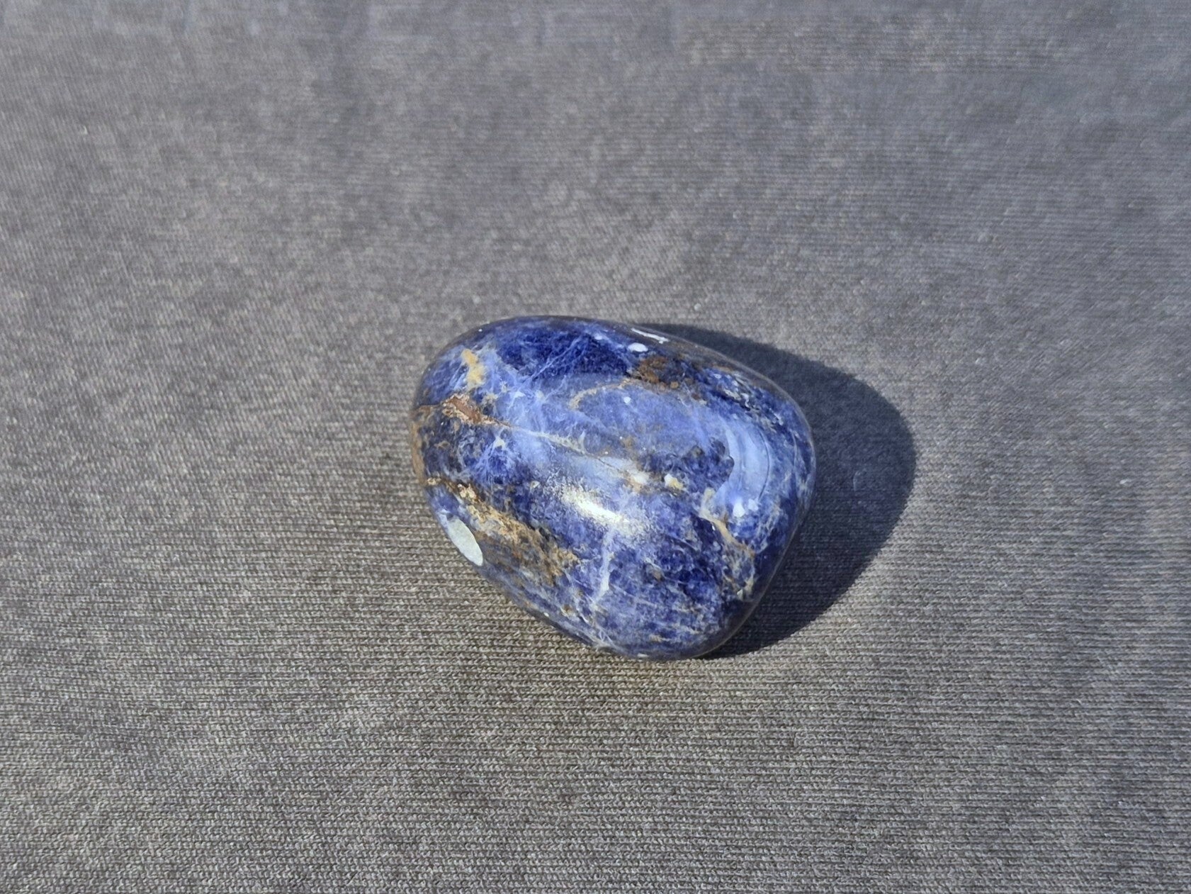 Bei diesem blauen Sodalith Anhänger handelt es sich um eine sehr gute Qualität, die nur kleinste helle oder auch graue Anteile enthält. Im Vergleich zu manch anderen Qualitäten aus aktuellen Funden, ist der Blau-Anteil jedoch überdurchschnittlich hoch. Kleine Oberflächenfehler sind gelegentlich vorhanden.