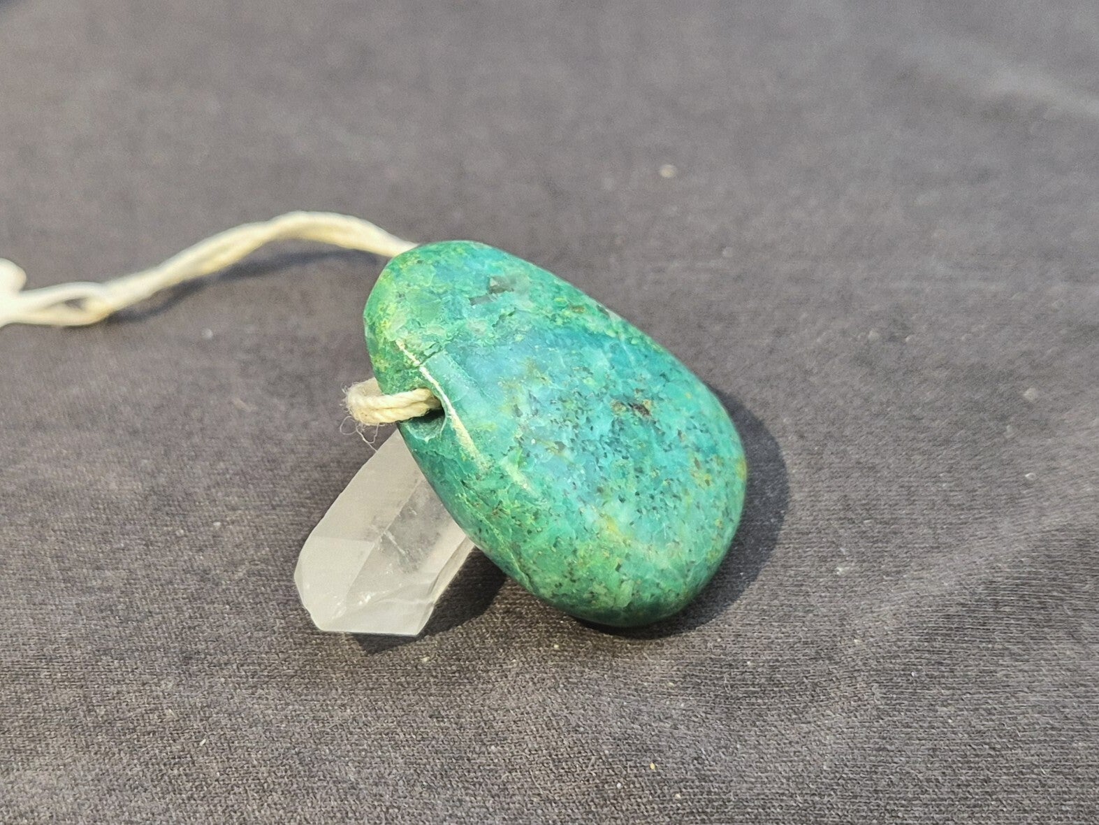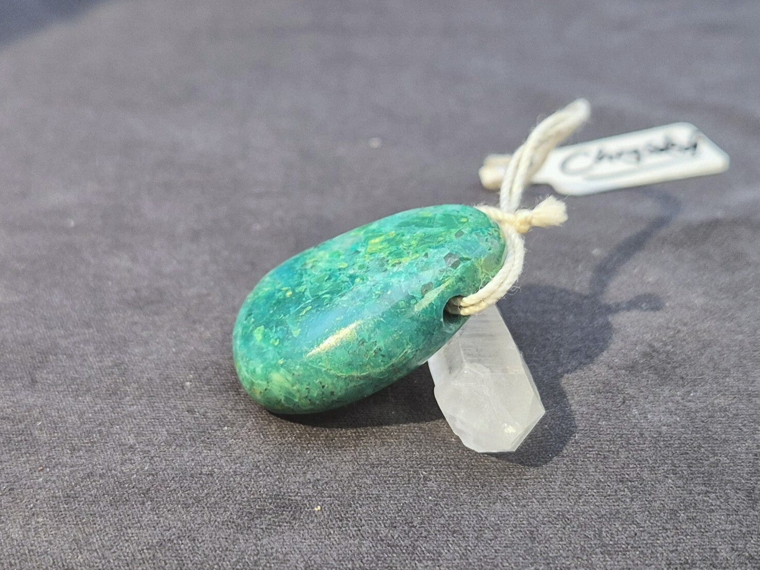 Der Chrysokoll heilt energetische Löcher im astralen und ätherischen Körper. Er ist ein starker Manifestationsstein, verbindet dich mit der Energie der Göttin und schenkt dir Freude und inneren Frieden. Der Chrysokoll korrespondiert mit Wasser und Wind.