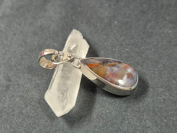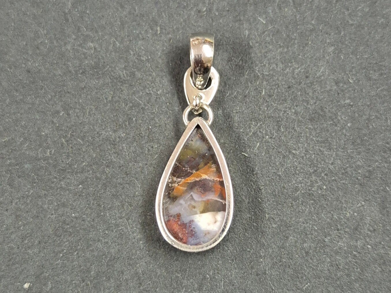 Opalisiertes Holz mit Kupfer-Dendrit, Anhänger Zargenfassung aus 925er Silber rhodoniert