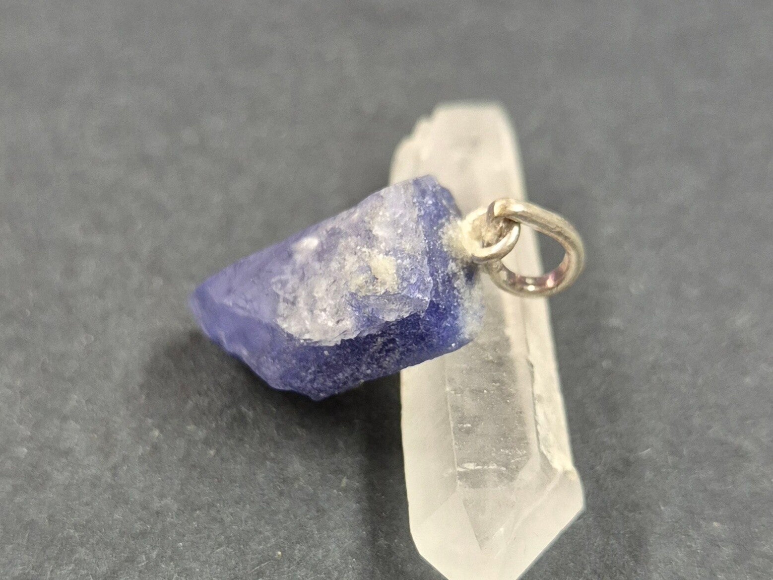 Dumortierit Naturkristall Anhänger mit Öse aus 925er Silber - Rarität