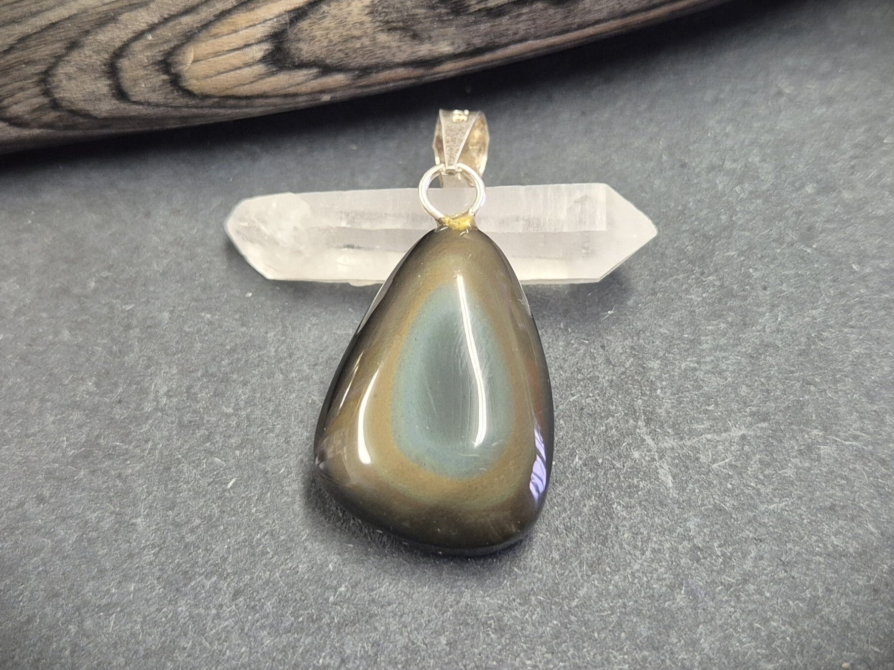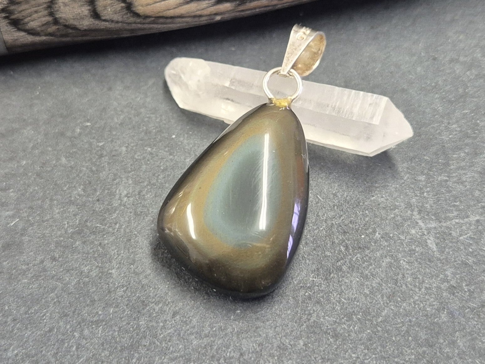 Regenbogenobsidian Anhänger mit Öse aus 925er Silber